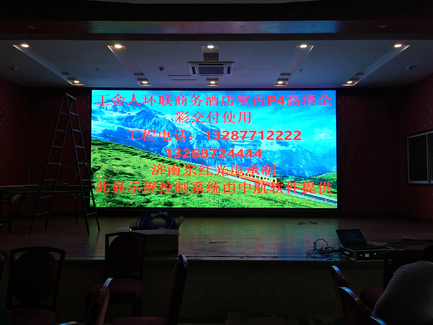 山東省濟南市環(huán)聯(lián)商務(wù)酒店 室內(nèi)P4 ,總點數(shù)1600×768(寬×高)1張發(fā)送卡,10張接收卡完美帶載!單卡最大帶載320×384(寬×高),感謝濟南東紅光電徐總對中航的信任和認可,我們會更加努力!中航V5全彩系統(tǒng),讓效果證明實力!