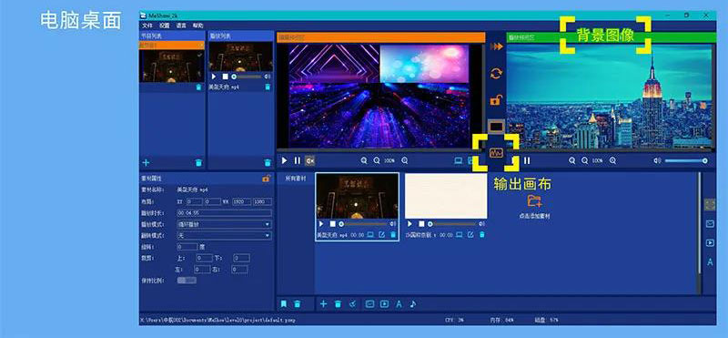 ·支持素材屬性調(diào)節(jié):如:位置、大小角度等;
