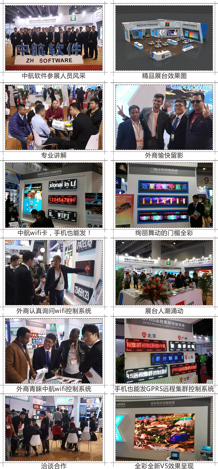 在剛剛過(guò)去不久的 2017廣州國(guó)際智能廣告標(biāo)示及LED展覽會(huì) 和 2017春季中國(guó)中部(鄭州)LED照明展及各地區(qū)展會(huì),中航軟件2017年展示產(chǎn)品系列:全新V5,視頻處理器,全彩同步系列,全彩異步系列,門(mén)楣全彩(高、低灰)系列,超長(zhǎng)帶載網(wǎng)口卡,全面升級(jí)版WIFI系列,GPRS系列,網(wǎng)絡(luò)卡系列等。中航軟件全系列LED控制系統(tǒng)紛呈璀璨,吸引八方賓朋駐足、拍照、洽談!