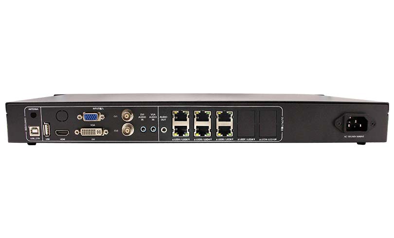 3. The following output signal interface is supported: LAN(RJ45)×6 (with network interface connection status indicator). The maximum resolution of the machine is 3.9 million pixels, support resolution customization. Pixels support: the Max width is 8192 and Max width is 2160.