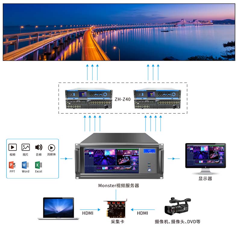 產(chǎn)品概述中航ZH-Z900視頻服務(wù)器是中航軟件為滿足舞臺、酒吧、多媒體展廳、會議室等不同應(yīng)用場景LED大屏精心打造的一款集成播控服務(wù)器。最大支持8路3840x2160@60Hz超大分辨率點(diǎn)對點(diǎn)顯示??梢詫?shí)現(xiàn)功能超強(qiáng)的音視頻播放、多場景編排功能,根據(jù)需求靈活配比,使用戶管理便捷、操作簡單,獲得更好的應(yīng)用使用效果。