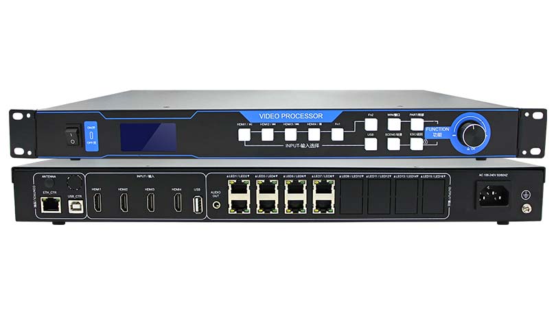 ZH-Z8Q 三畫面視頻處理器視頻處理器是中航軟件為滿足LED大屏安裝方便精心打造的一款產(chǎn)品。支持HDMI/USB高清信號輸入;最大可接收4096*2160@30Hz像素的高清數(shù)字信號,支持8路千兆網(wǎng)口輸出,單機(jī)帶載支持最寬16384像素,或最高4320像素的大屏。采用全新通信架構(gòu),高刷新、高亮度、全新灰度掃描引擎,納秒級同步,惡劣通信狀態(tài)仍能保持通信順暢,讓廣大用戶感受更多彩、更美好的LED世界!
