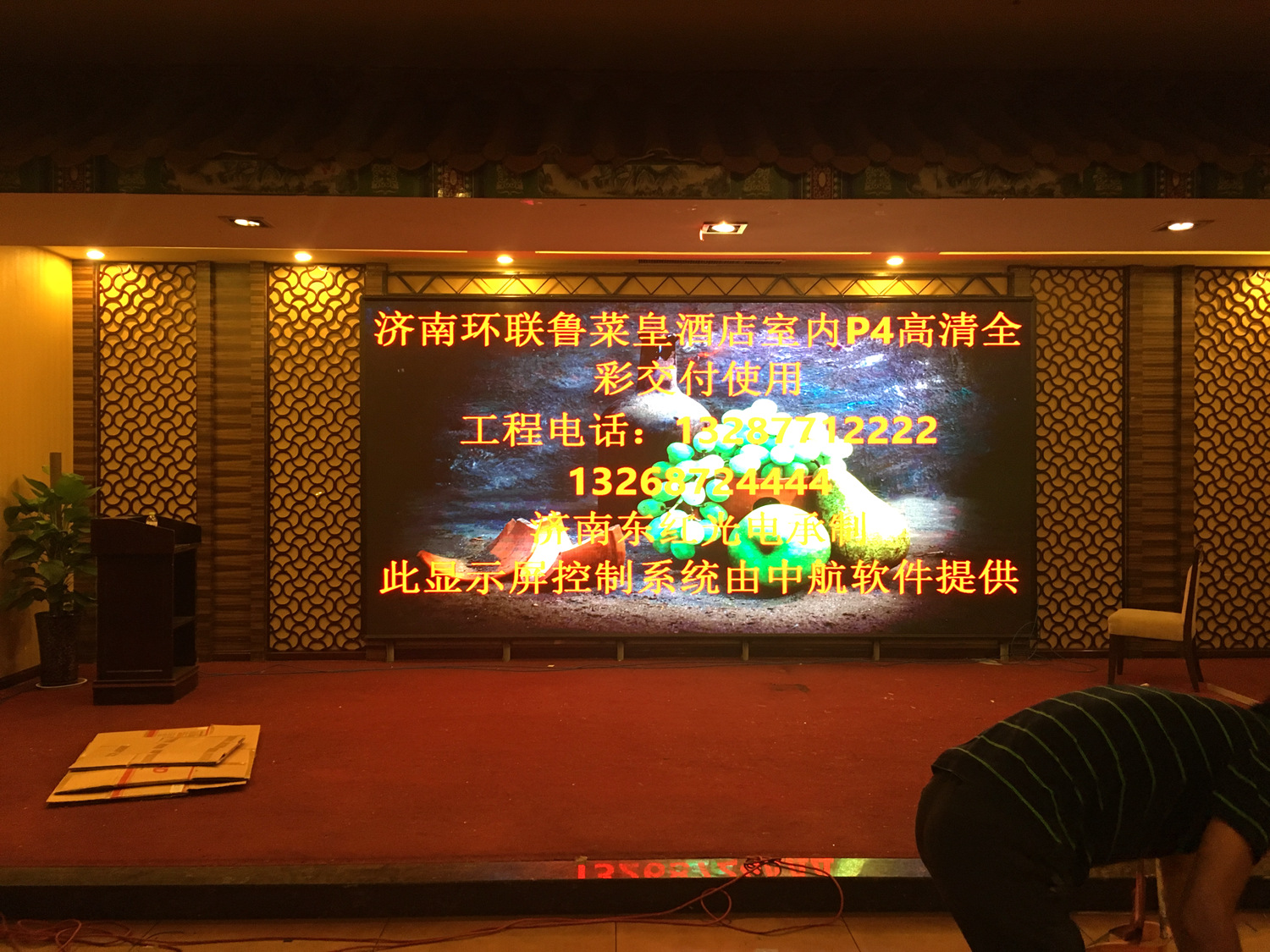 山東省濟南市環(huán)聯(lián)商務(wù)酒店 室內(nèi)P4 ,總點數(shù)1600×768(寬×高)1張發(fā)送卡,10張接收卡完美帶載!單卡最大帶載320×384(寬×高),感謝濟南東紅光電徐總對中航的信任和認可,我們會更加努力!中航V5全彩系統(tǒng),讓效果證明實力!