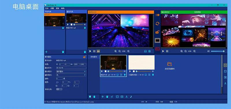 ·支持素材屬性調(diào)節(jié):如:位置、大小角度等;