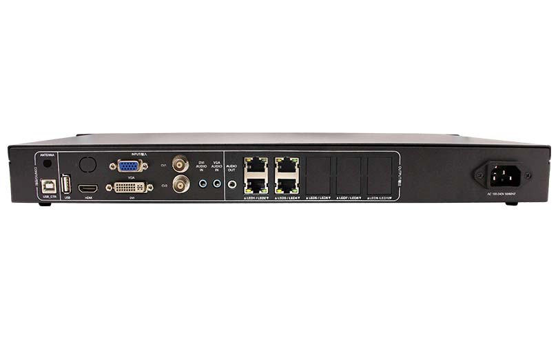 3. The following output signal interface is supported: LAN(RJ45)×4 (with network interface connection status indicator). The maximum resolution of the machine is 2.6 million pixels, support resolution customization. Pixels support: the Max width is 8192 and Max width is 2160.